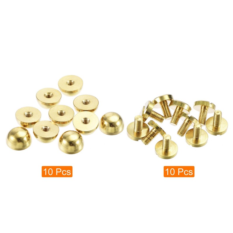 sourcing map 12x7mm Round Studs Rivet Purse Handbag Feet Spike Brass Leather Craft Screw Back Rivets DIY 10 Sets
