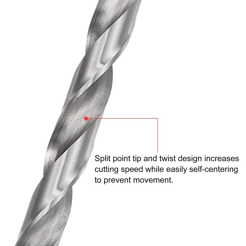 - Twisted Design: Split point tip and twist design increases cutting speed while easily self-centering to prevent movement. The twisted design of the drill bit quickly removes drilled chips, then leaving a smooth hole.