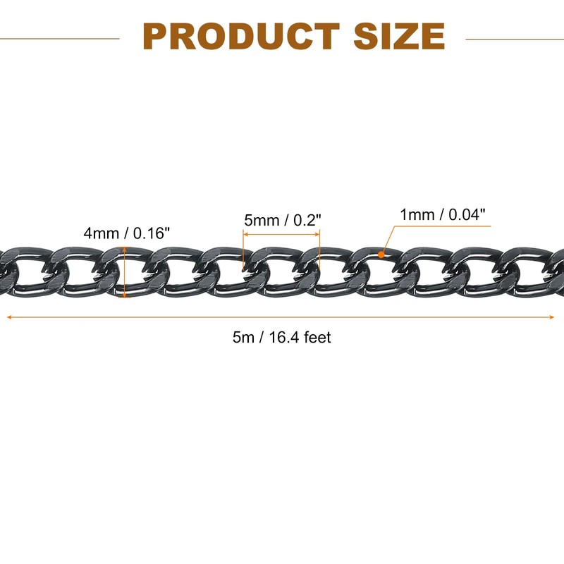 - [Package and Size]: Link Chain Length: 5 m / 16.4 feet; Ring Size: 5x4x1mm / 0.2x0.16x0.04inch(L*W*D); Package Content: 1Pcs x Link Chain Roll