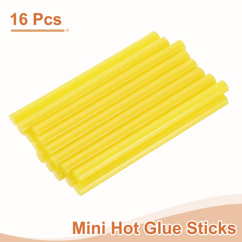 sourcing map 16 Pcs Mini Hot Glue Sticks, 0.28" Dia x 3.94" Long EVA Glue Gun Sticks, Yellow Mini Hot Melt Glue Sticks for DIY Craft Sticky Projects