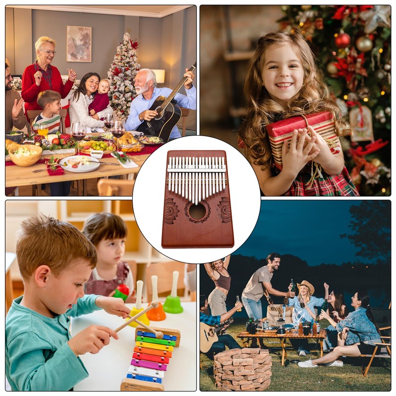 The 17-key portable finger piano is made of wood, which is resistant to corrosion and has a beautiful appearance