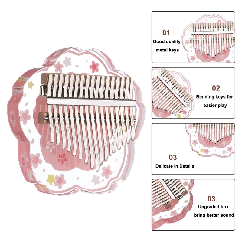 - This thumb piano 17 Keys shaped giving you a better sense of hearing,vision and touch.It's suitable for most girls, women and more.You can also choose the one you like for decoration or play to enjoy a lot of fun.