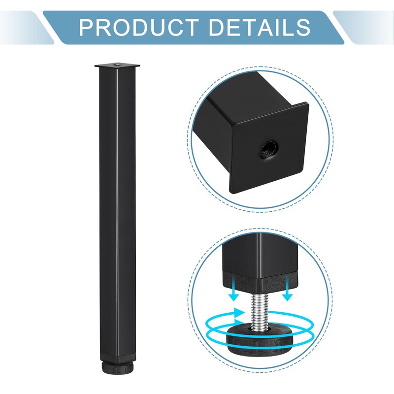 sourcing map 1pcs Adjustable Height Bed Frame Support Legs, Bed Frame Center Support Leg Bed Legs Replacement Frame Slat Feet Risers(350mm-370mm/13.8"-14.6") for Furniture Cabinet, Black