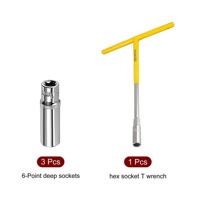 • Package Content: 1 x hex socket T wrench, 4 x 6-Point deep sockets.