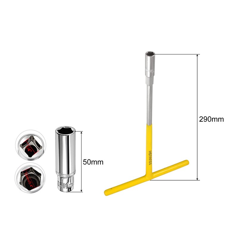 sourcing map 1pcs Hex Hexagon Socket Wrench T Handle 10mm Yellow Rubber Coated & 4pcs 6-Point Deep Socket 10mm CR-V