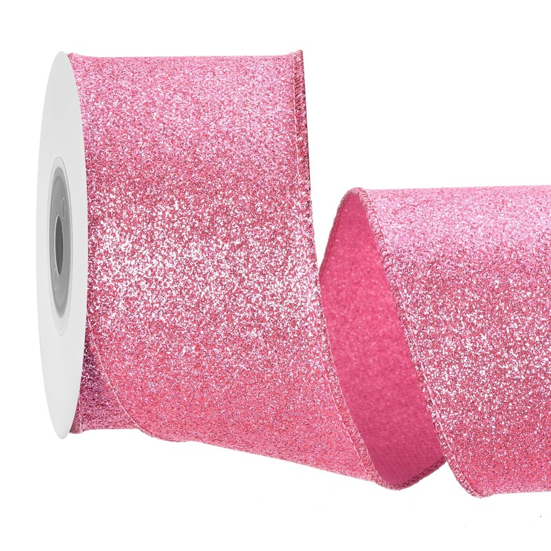 sourcing map 2.5 Inch/6.3cm Glitter Wired Ribbon, Pink Sparkly Iridescent Ribbon 10 Yard for Christmas Tree Wreath Decoration Gift Wrapping, with Metallic Edge