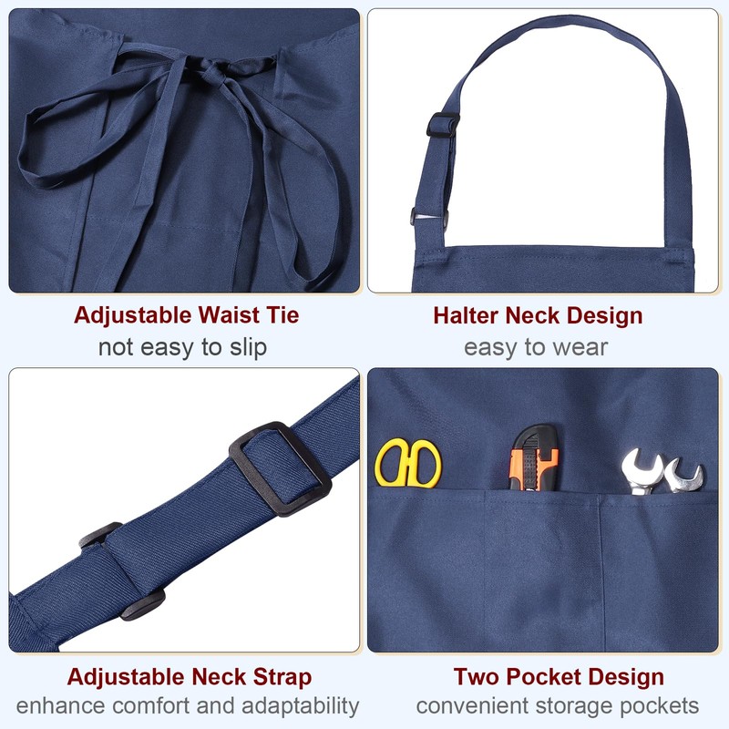 - Material - The cooking apron is made of polyester, durable and waterproof which is easy to finish, not easy to fade and can be machine washed in cold water many times.