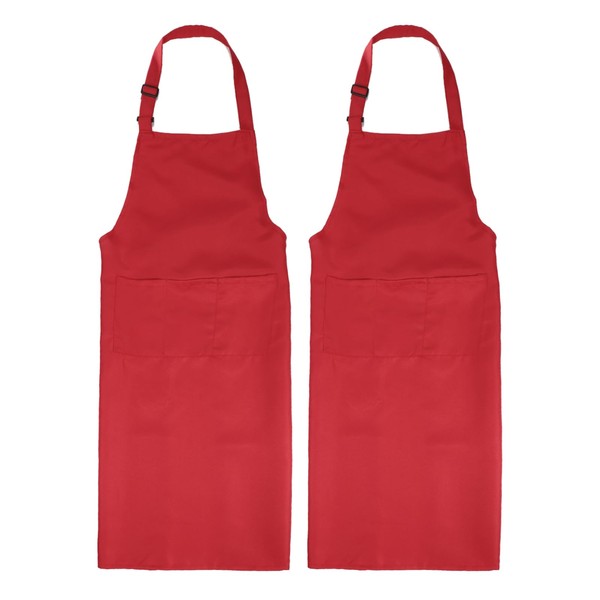sourcing map 2 Pack Kitchen Cooking Aprons 90x69cm Adjustable Bib Waterproof Chef Apron with 3 Pockets for Men Women Chef, Red