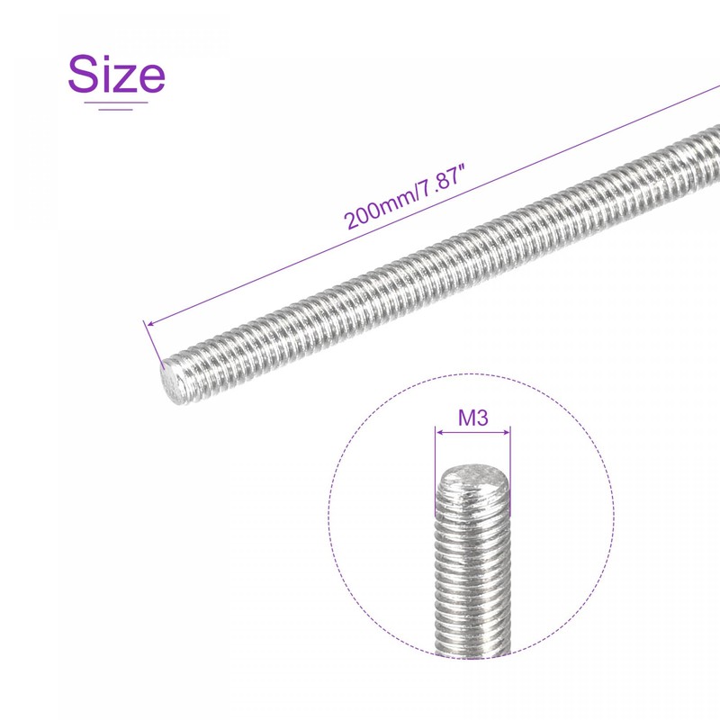 - Size: Material: 304 Stainless Steel; Color: Silver Tone; Thread size: M3; Thread Length: 200mm / 7.87 inch;Thread Pitch: 0.5mm