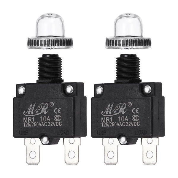 sourcing map 2 Pcs 10Amp Push Button Circuit Breaker,125/250V AC 32V DC Manual Reset Thermal Overload Protector with Waterproof Button Caps