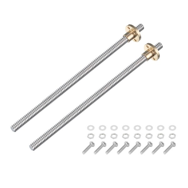 sourcing map 2 Pcs 200mm / 8 Inch Tr8x4 Stainless Steel Lead Screw with T8 Brass Nut - [ Acme Thread, 2mm Pitch, 8mm Lead ] for 3D Printer Z Axis, CNC Machine