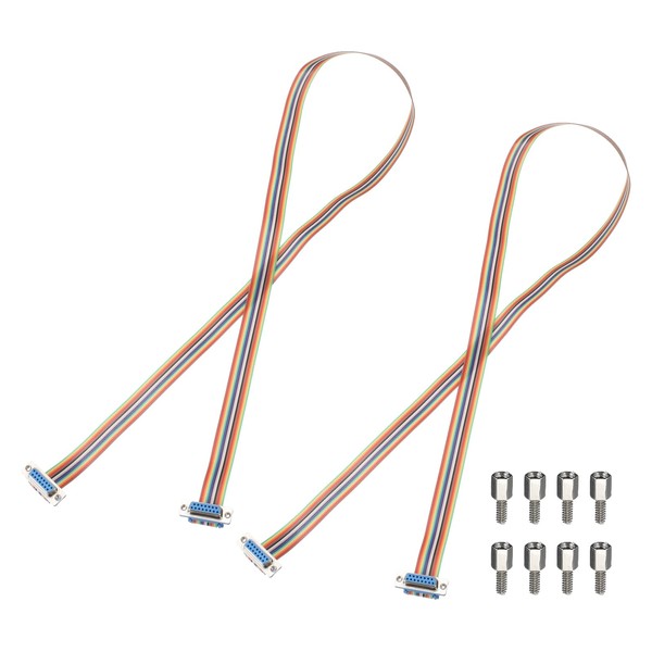 sourcing map 2 Pcs IDC Rainbow Wire Flat Ribbon Cable DB15 Female to DB15 Female 39 Inch Length 2.54mm Pitch Breadboard Jumper Wires for Electronic Projects