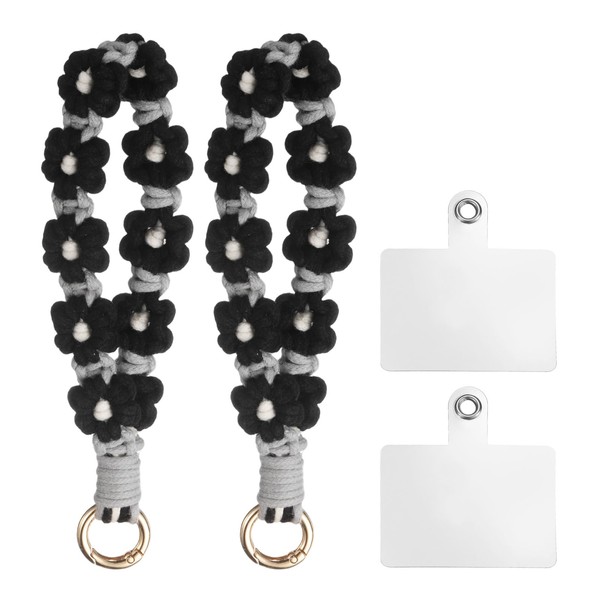 sourcing map 2 Pcs Phone Wrist Strap, Cell Phone Lanyard Bracelet with Tether Tabs Handmade Smartphone Wristlet Keychain Anti-Loss Phone Chain for Women, Black