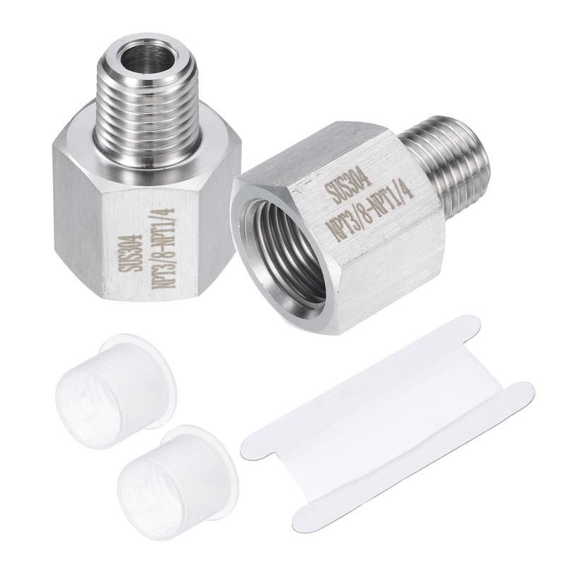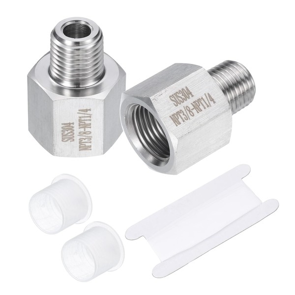 sourcing map 2 Pcs Pipe Fittings Reducer Adapter 1/4" NPT Male Pipe x 3/8" NPT Female Pipe Stainless Steel Adapter Pressure Gauge Connector for Oil Air Gas Hydraulic Systems
