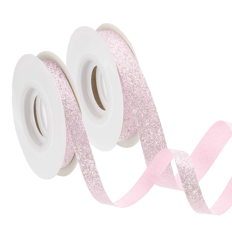sourcing map 2 Roll 10 Yards 2 Sizes Sparkle Ribbons, Wreath Crafts Cut Edge Ribbon, Sparkling Fabric Ribbon for Bow Making, Gift Wrapping, Wedding Party Decoration, Pink (3/8", 5/8")
