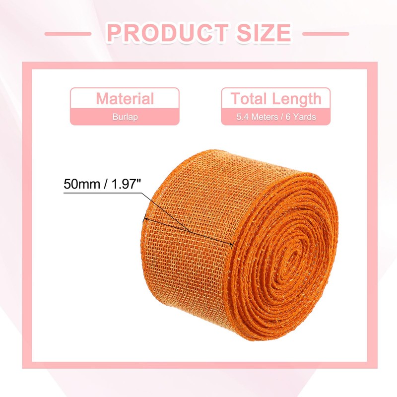 sourcing map 2" x 6 Yards Burlap Wired Ribbon, Natural Fabric Edge Rustic Ribbons for Bows Gift Wrapping Wreath Holiday Wedding Party Home Decorations DIY Crafts, Orange