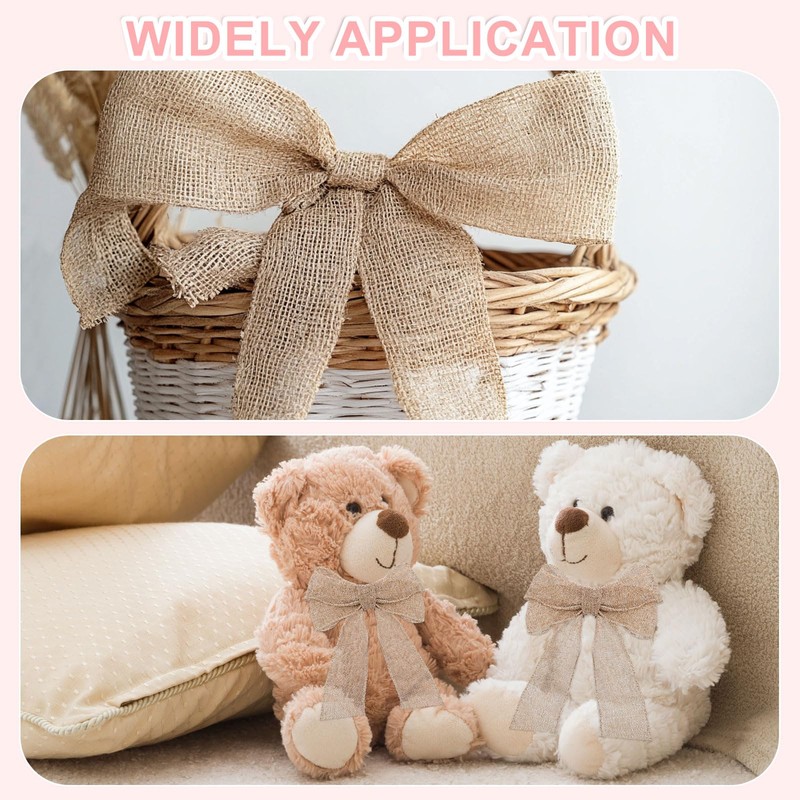 - [MATERIAL]: The rustic decorative wrapping ribbons are made of burlap, with fine workmanship and fine texture, and do not easily tear, break, wrinkle, or fade. It is an excellent indoor and outdoor decorative craft ribbon, that can add beauty and elegance to your handicrafts, decorations, or gifts