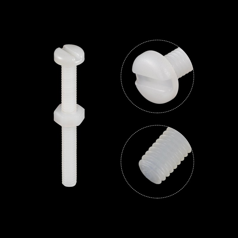 - [Features] - Made of nylon material, these slotted machine screws and hexagon nuts are more lightweight than the metal ones, anti-static, have insulation, are corrosion-resistant, have no rust, and long service life. Good for use as fixing components, industrial, construction and DIY fasteners