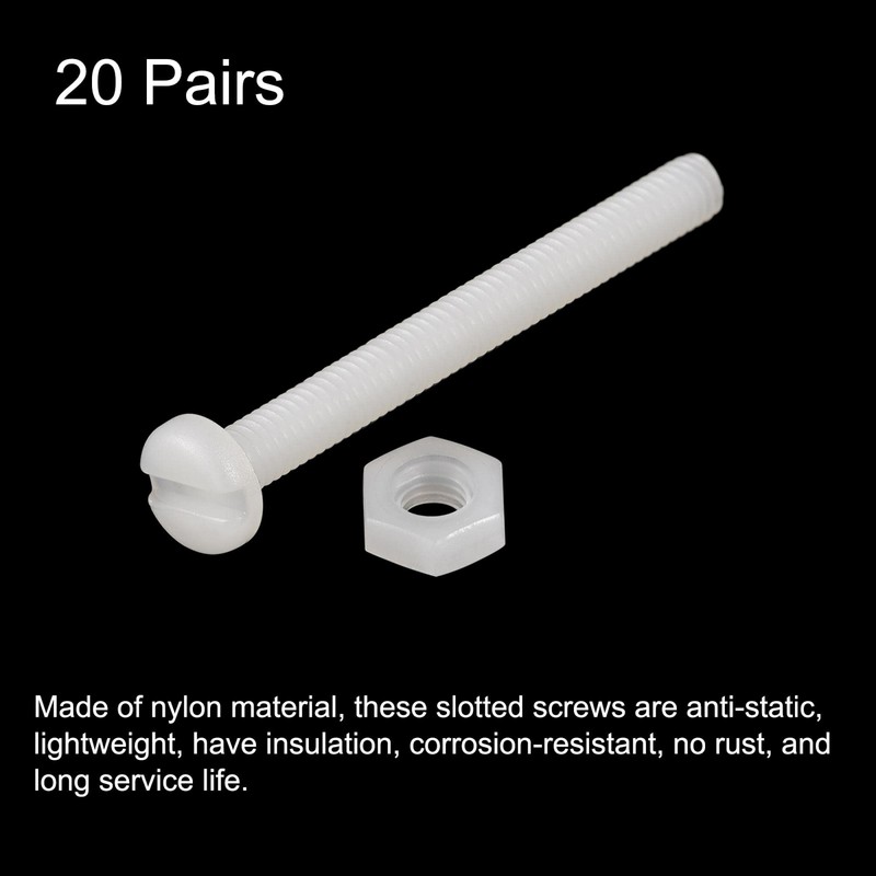 sourcing map 20 Pairs Nylon Screw Nut Assortment, M4x40mm Slotted Pan Head Screws & M4 Hex Nuts for Machinery, Electronics, White