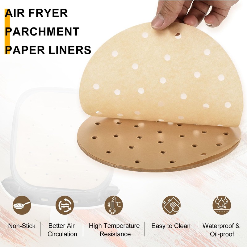 - Feature - The non-stick parchment paper sheets can effectively prevent food from sticking to the paper, which can also prevent food from directly contacting the air fryer or steamer and leaving food residue, making cleaning easier. Perforated parchment liner is designed with sufficient ventilation holes to help speed up the steam circulation in the steamer or air fryer so that the food is heated evenly.