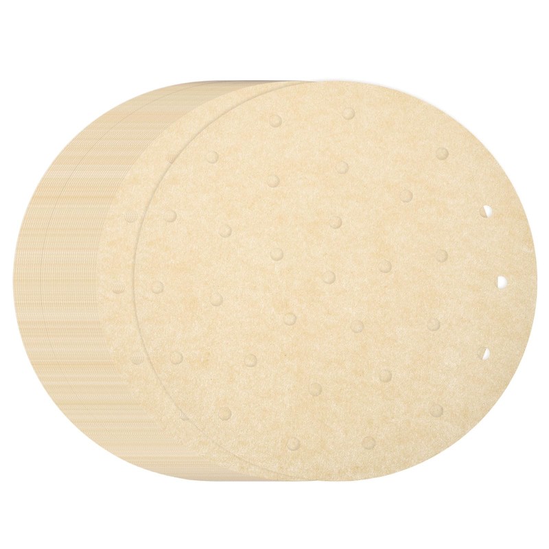 Perforated parchment liner is designed with sufficient ventilation holes to help speed up the steam circulation in the steamer or air fryer so that the food is heated evenly. This bamboo steam paper is disposable and replaces the traditional steamer cloth, reducing the inconvenience of cleaning after use.