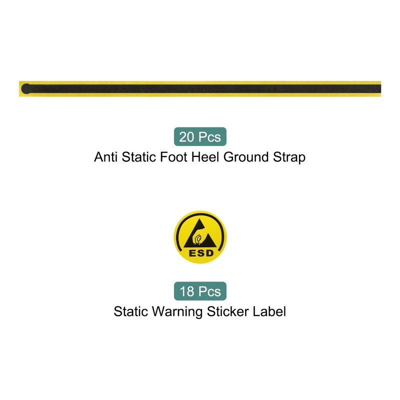 sourcing map 20pcs ESD Anti Static Foot Heel Ground Straps 11.8 x 0.60 Inch Disposable Adjustable for Grounding Removing Static (with Static Warning Sticker Label)