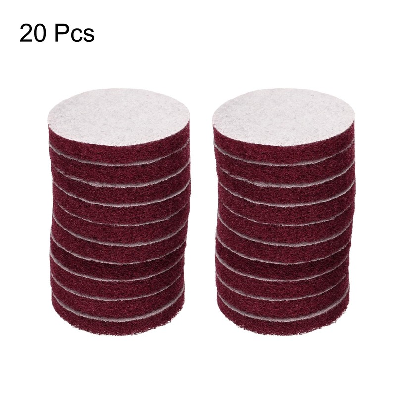 sourcing map 20pcs Scrubber Scouring Pads 500 Grits 3 Inch Drill Power Brush Hoop and Loop Surface Conditioning Disc Drill Scuffing Disc Scrub Pads for Home Kitchen Cleaning, Dark Red