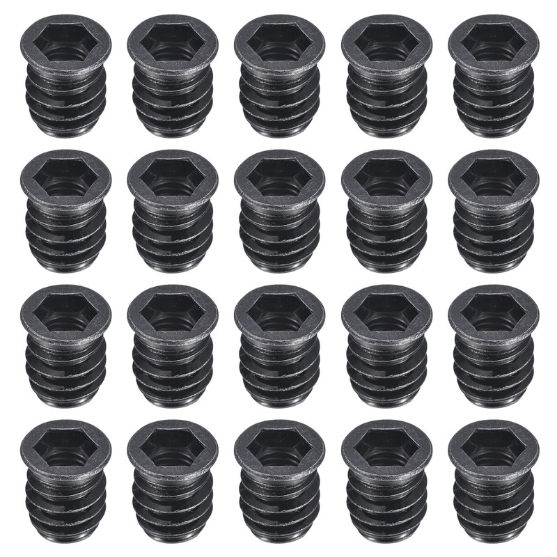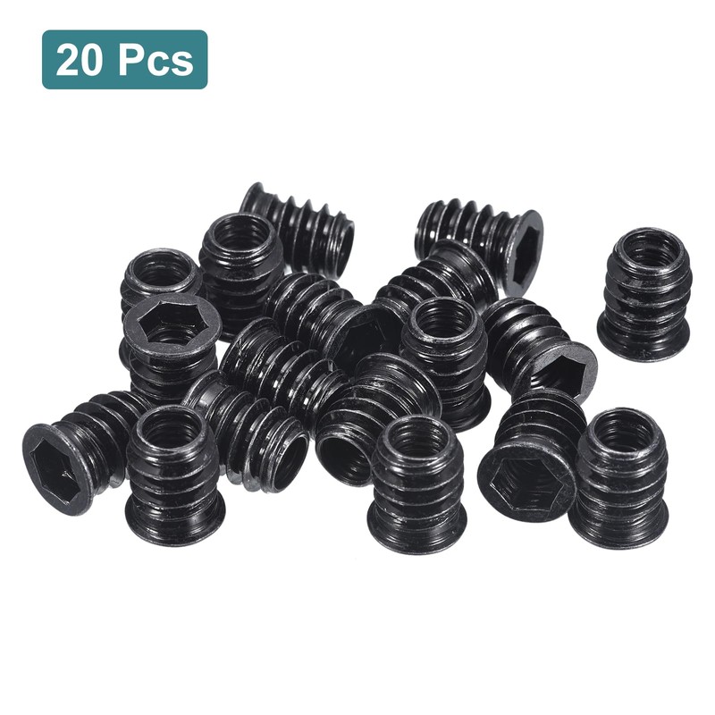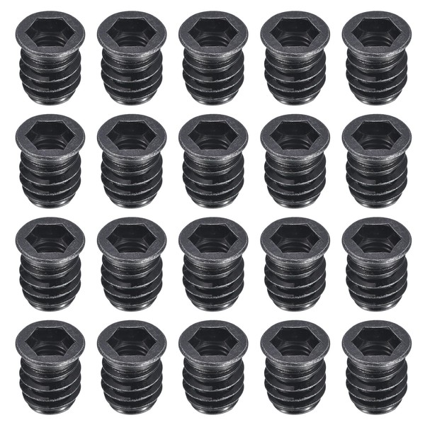 sourcing map 20Pcs Threaded Inserts, M10-1.5x20 Zinc Plated Carbon Steel Hex Socket Drive Screw-in Nut Threaded Inserts for Wood Working Tool and Accessories