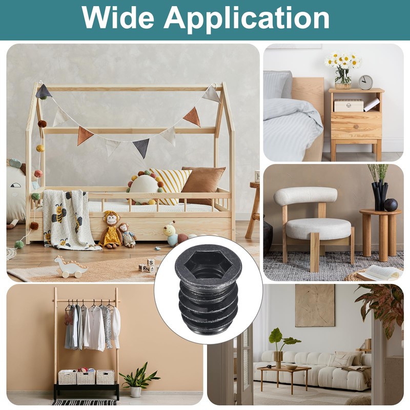 • Easy To Use: First drill a hole with a depth of 1-2 mm longer than the furniture screw, and then use the provided hexagonal wrench or other optional driving tools to install the nut. If the furniture's wood hardness is higher, please enlarge the screw hole.