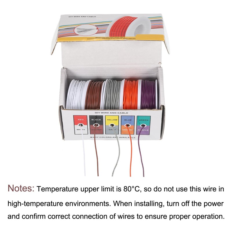 • Please note that the rated voltage of this product is 300V. Temperature upper limit is 80°C, so do not use this wire in high-temperature environments. When installing, turn off the power and confirm correct connection of wires to ensure proper operation.