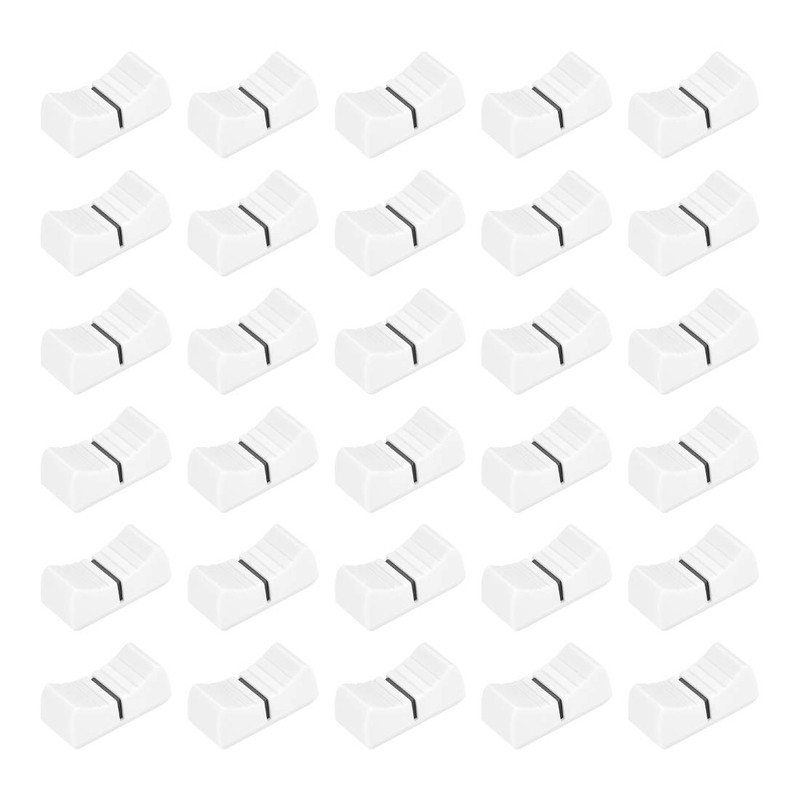 sourcing map 24mmx11mmx10mm Console Mixer Slider Fader Knobs Replacement for Potentiometer White Knob Black Mark 30pcs