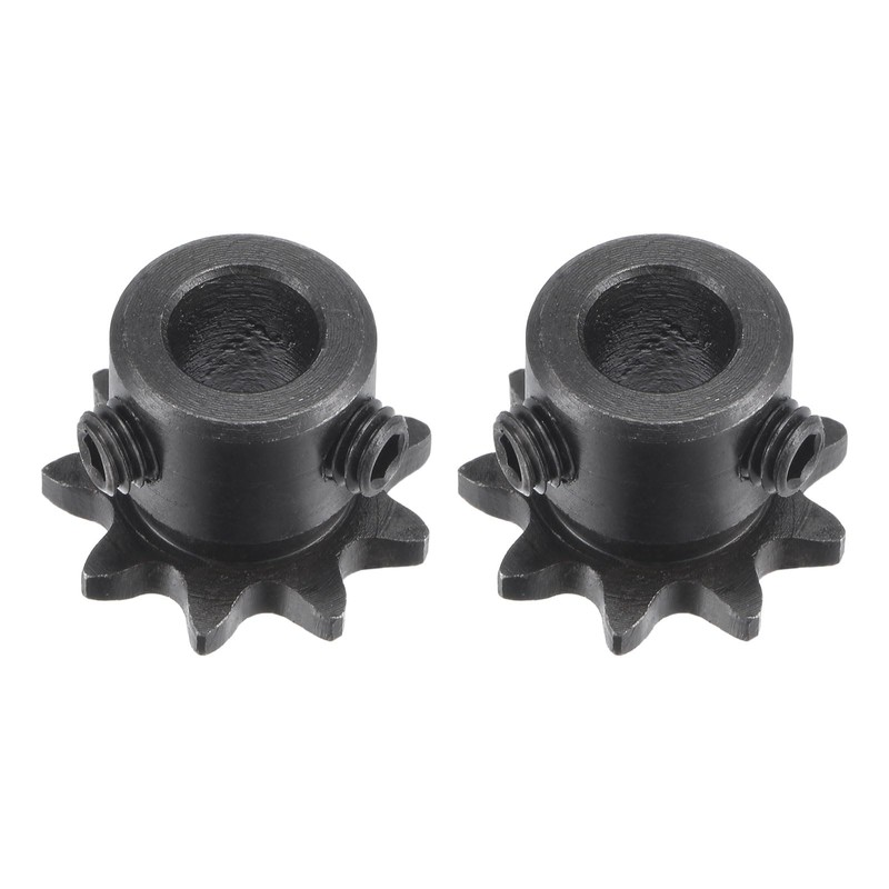 sourcing map #25 Chain Roll Gear 8 mm Bore 1/4 Inch Distance 9 Tooth Single Beach Chain Sprocket C45 Carbon Steel 25 Roll Chain Sprocket with Set Screws for ISO 04C Chain Pack of 2