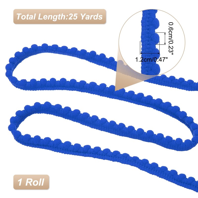sourcing map 25 Yards Pom Pom Trim Ribbon, 0.5" Wide Bright Blue Pom Pom Ball Fringe Trim Sewing Fringe Fabric Trim Ribbon for DIY Crafts Curtain Clothes Pillow Home Decoration