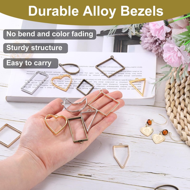 - Easy to use the bezels for jewelry making: Simply add resin, pearls, flash powder, dried flowers, leaves, rhinestones and other materials to the pendant bezel, you can get the resin crafts with your style.Good quality can ensure no leakage during the crafting process. Just need a few minutes to realize all kinds of creative possibilities.