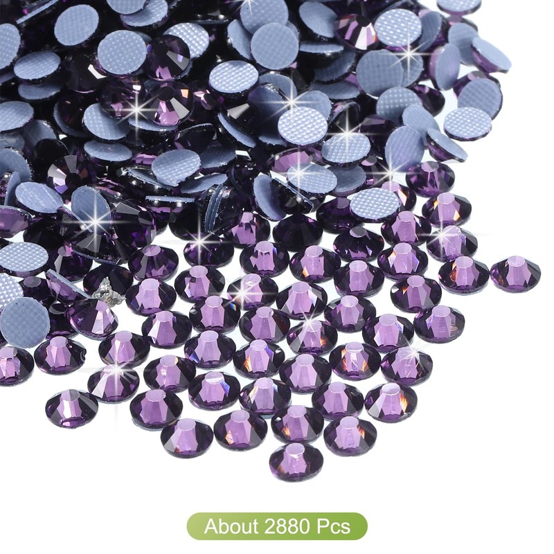 sourcing map 2880 Pcs Hotfix Rhinestones Flatback Crystal Glass Gems Art Rhinestones for Crafts Clothes DIY Decoration(SS8 2.5mm,Purple)