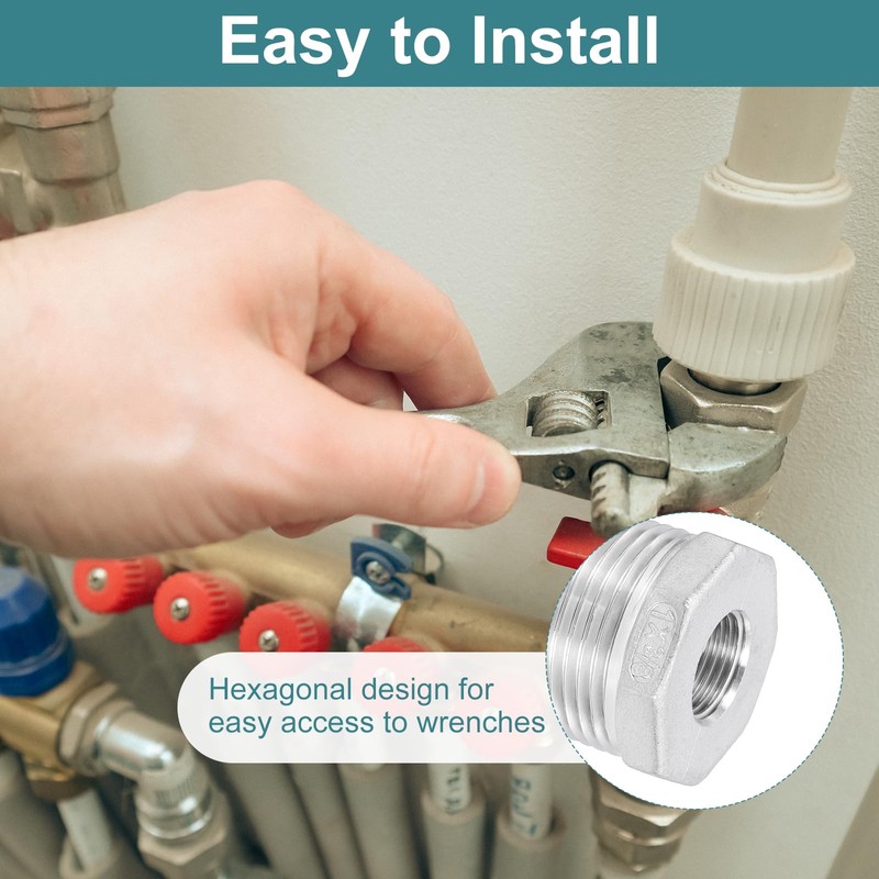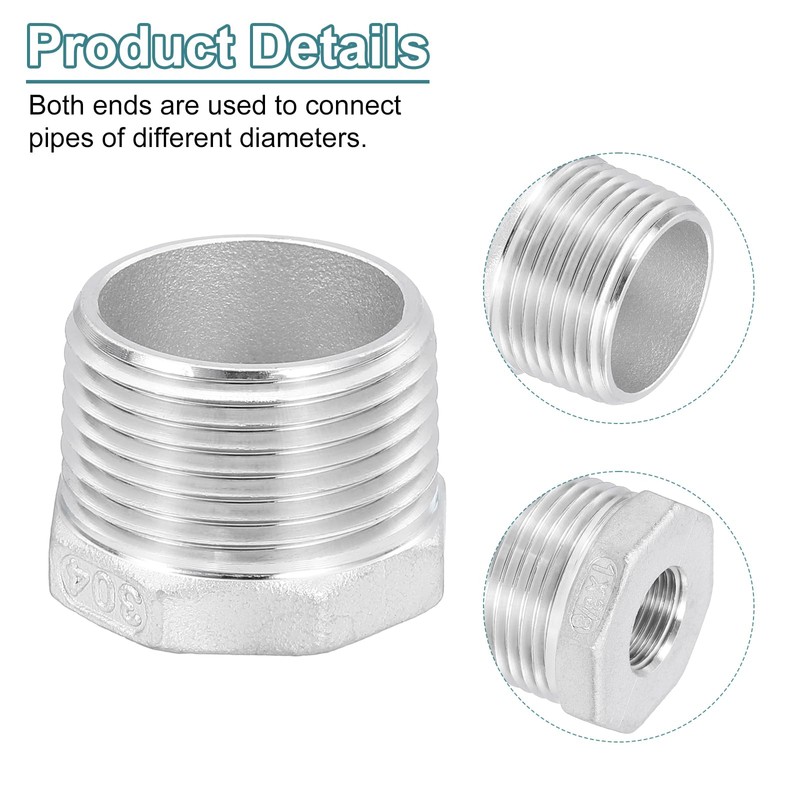 sourcing map 2Pcs 1" Male to 3/8" Female NPT 304 Stainless Steel Reducer Hex Bushing, Reducing Cast Pipe Adapter Fitting for Industrial, Oil/Gas, Water, HVAC, and Plumbing Systems