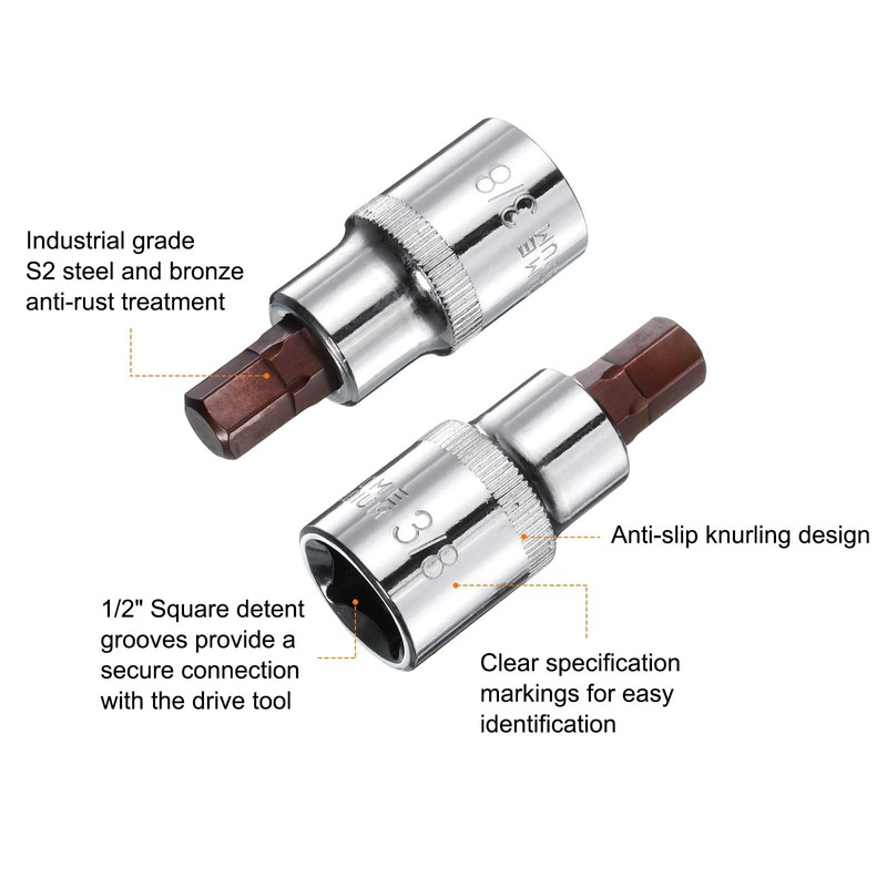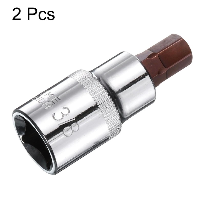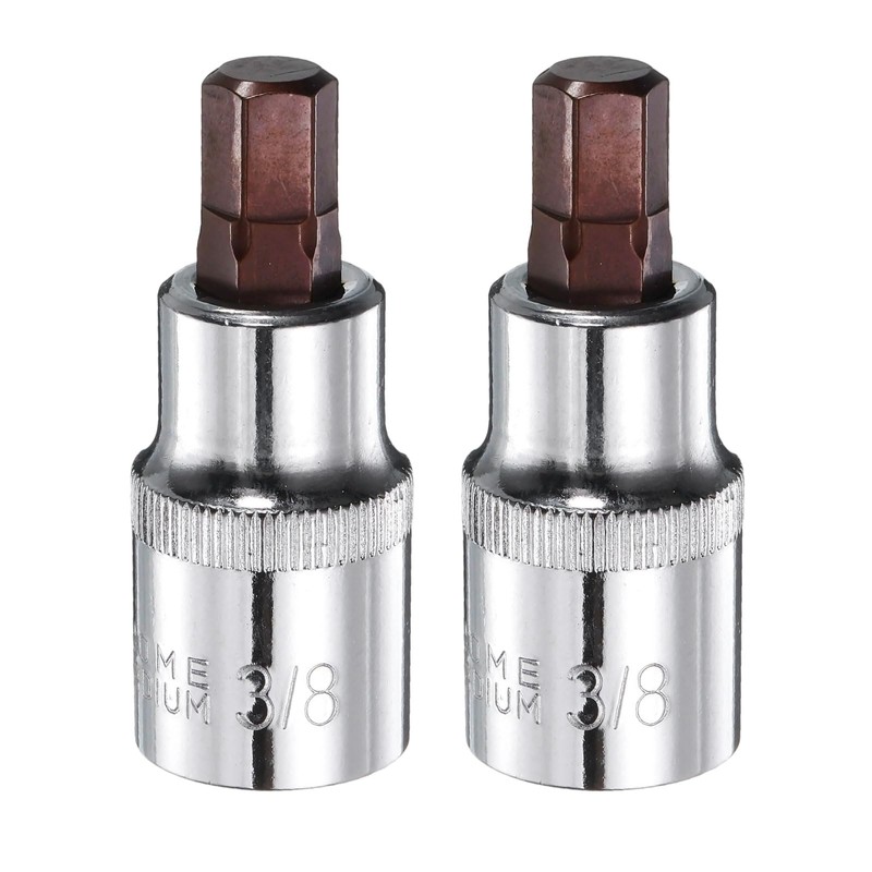 sourcing map 2pcs 3/8" Hex Bit Socket 1/2" Square Drive SAE Extension Impact Bit Power Nut Driver Set S2 & CR-V Steel Socket Ratchet Wrench Bits