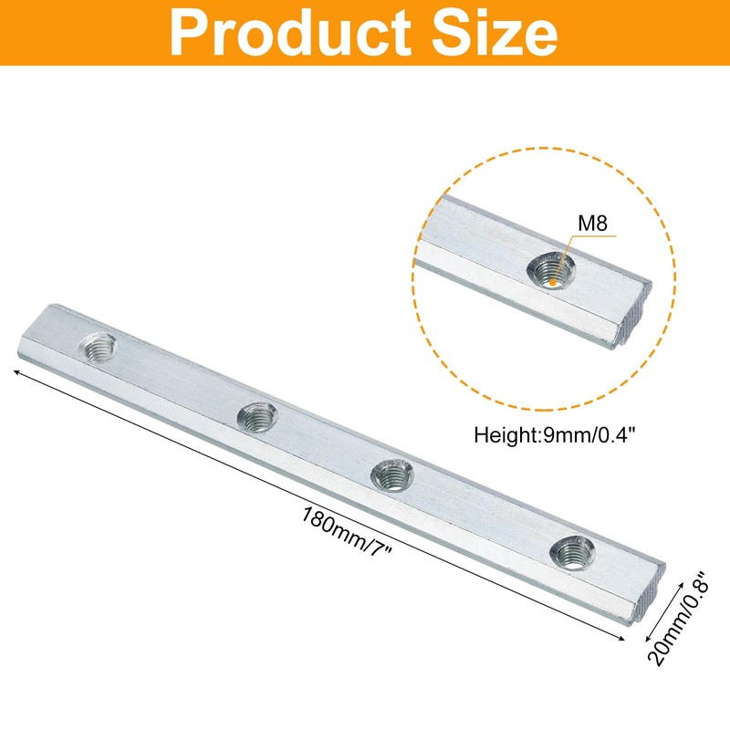 - Specification: Total Size: 180x20x9 mm/7x0.8x0.4 inch(L*W*H); Package Includes 2pcs straight line connectors, 8pcs screws, and a wrench.