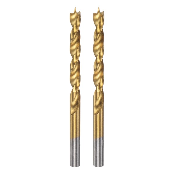 sourcing map 2pcs Brad Point Drill Bit 6.5mm(1/4") Dia Straight Round Shank Drill Metric Brad Point Spiral Twist Drill Bits for Carpenter Woodworking Plastic Rubber, Golden