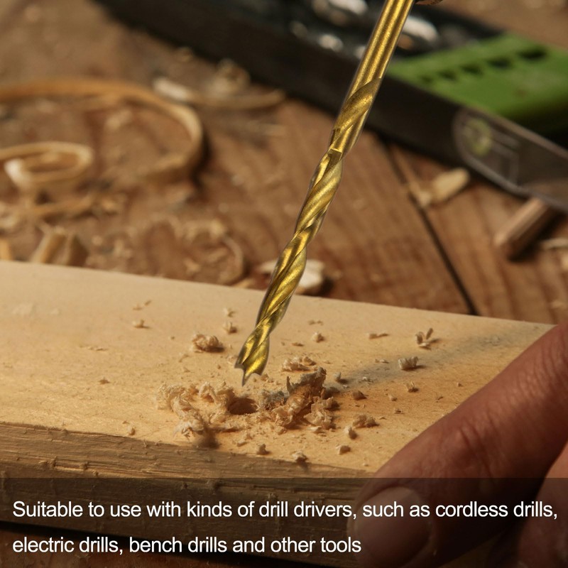 - Material - Made of High-Speed Steel 4241 with Titanium coating for higher wear resistance, able to withstand higher temperatures, our brad point drill bits are not easy to break and have a long service life.