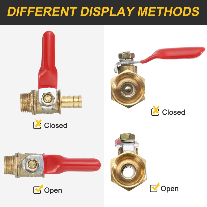 - [Adventage] Easy Installation in tight working spaces. Red Plastic-covered lever handle for fast open or closed operation; For all types of tubing. Wrap the thread with thread seal tape, then insert the barb into the tubing and secure it with hose clamps(not included)