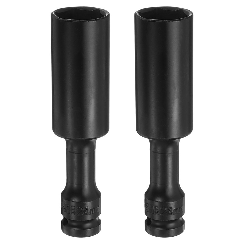 sourcing map 2pcs Deep Thin Wall Impact Socket 24mm Metric 6 Point Socket 1/2" Square Drive 5" Extra Long Phosphated CR-V Steel Industrial Grade Spindle Axle Nut Socket, Black