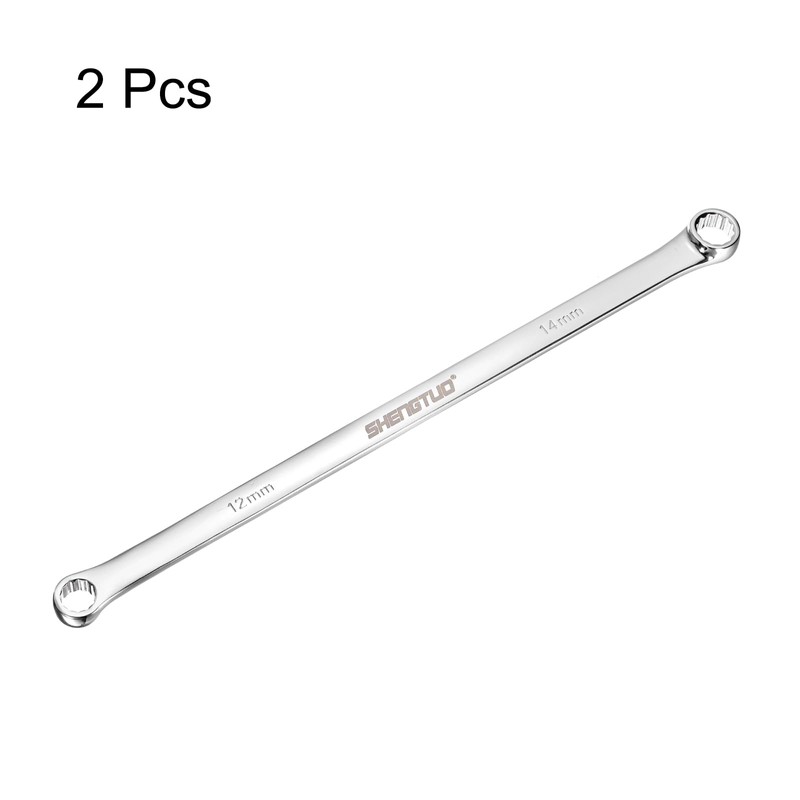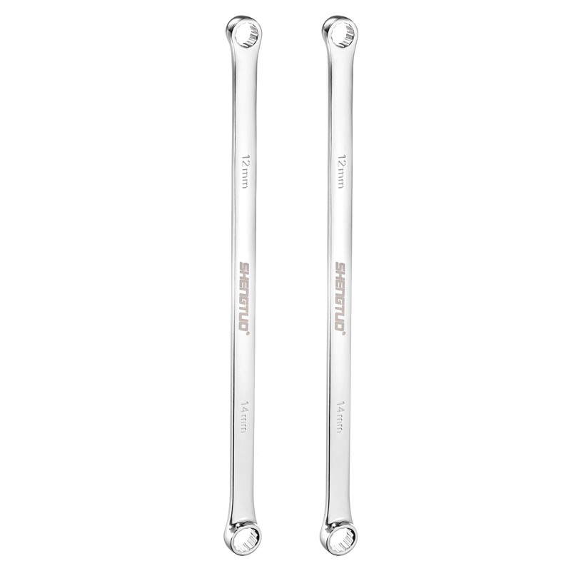 sourcing map 2pcs Double End Box Wrench 12 x 14 mm Metric 12 Point 0 Degree Offset Extra Long Double End Box Ratcheting Wrench CR-V Polished Long Spanner Tools for Repairs