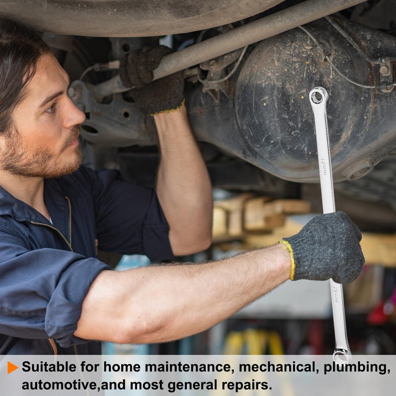 0-degree offset allows you to handle recessed bolts and bolts in narrow places easily and freely; the comfortable-grip extended handle saves time and energy, helping you complete professional maintenance work efficiently; the 12-point box end design provides additional grip and control, and transmits torque evenly to the contact surface to prevent slipping.