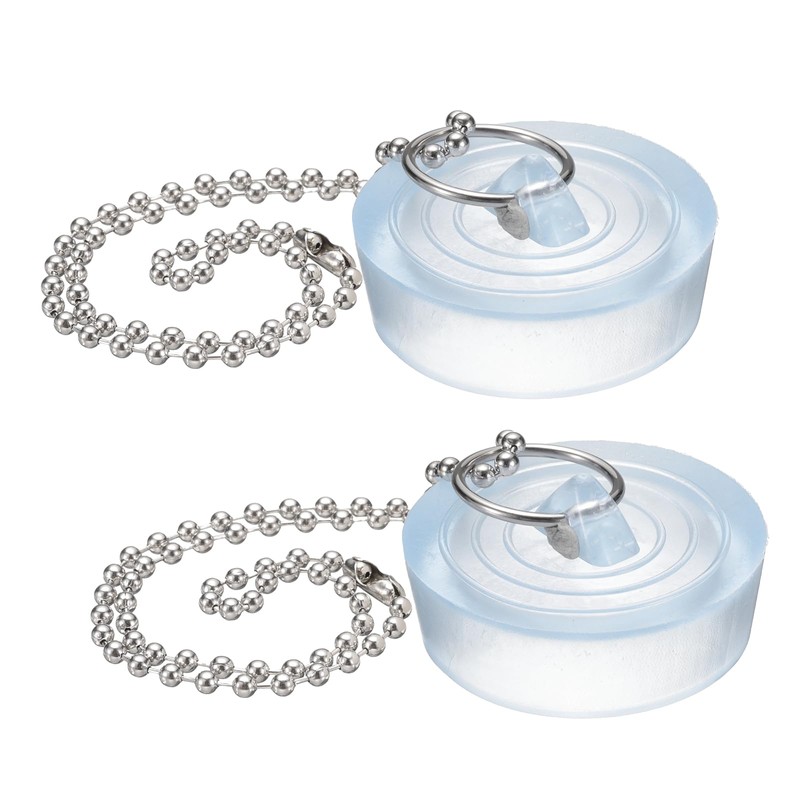 sourcing map 2Pcs Drain Stoppers, PVC Bathtub Stopper Sink Plugs Caps with Hanging Ring and 15" Bead Chains for Bathtub Kitchen Bathroom (Clear - 1.65" to 1.73")