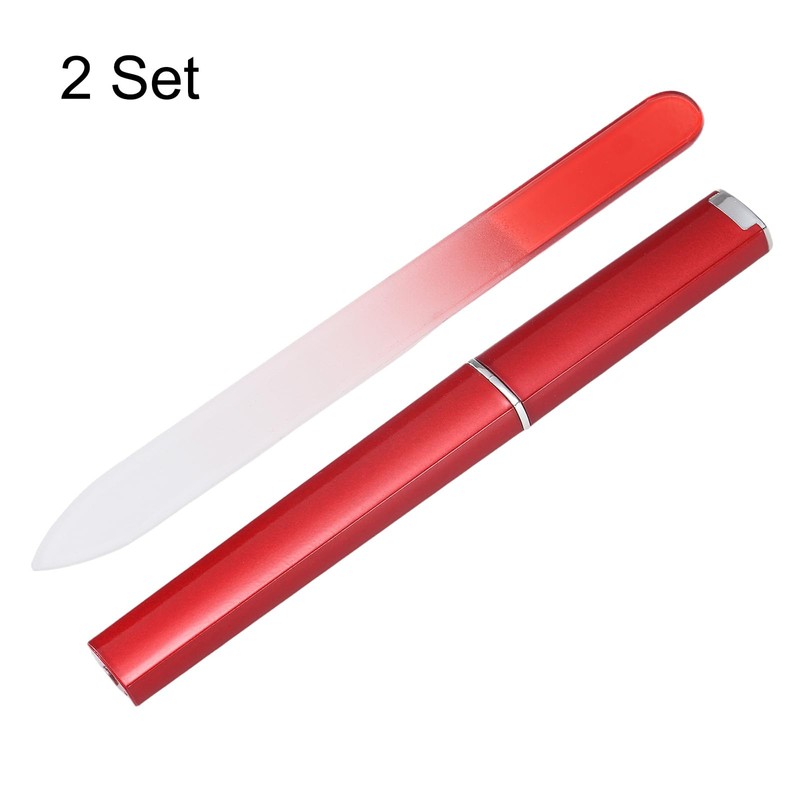 sourcing map 2pcs Glass Nail File Kit 280 Grit Double Sided Professional Manicure Crystal Fingernail Files with Case for Natural Nail Art Shine Polishing Buffer, Red