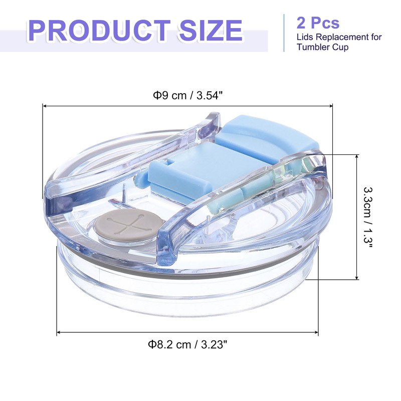- [SIZE & PACKAGING]: The tumbler lid is about 9 cm / 3.54 inch in diameter, and it is suitable for the 8.2 cm / 3.23 inch cup diameter, the thickness is 3.3 cm / 1.3". The package includes 2pcs of lids replacement for tumbler cup