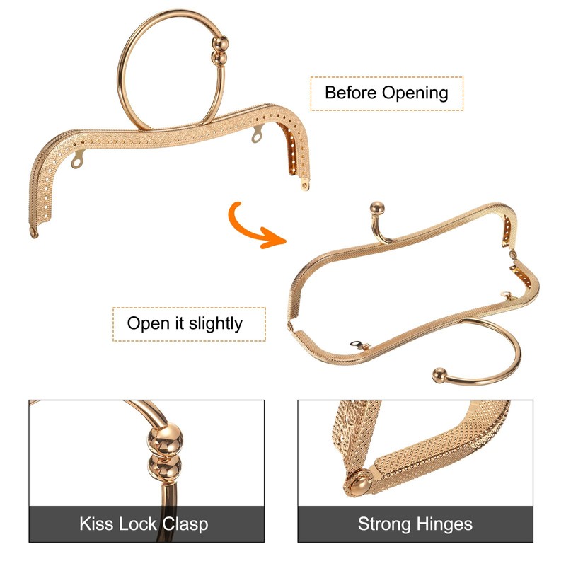 - Kiss Lock Clasp - The frames are designed to provide structural support for purse making, ensuring the shape and integrity of the bag. The kiss lock clasp forms a lock that is easy to open and close, keeping the contents safe and adding a decorative element.