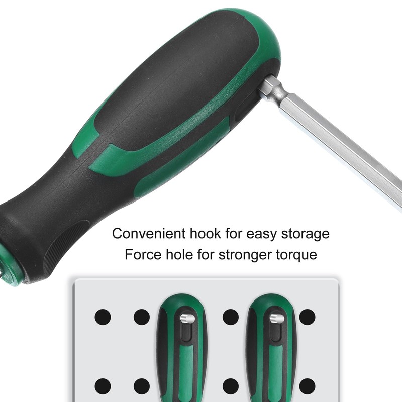 The 6-point screwdriver wrench comes with clearly printed dimensions, making it easy to identify and quickly obtain the wrench you need for a variety of tasks. Solid shaft for easy access to nuts and bolts in tight spaces and hard-to-reach areas.