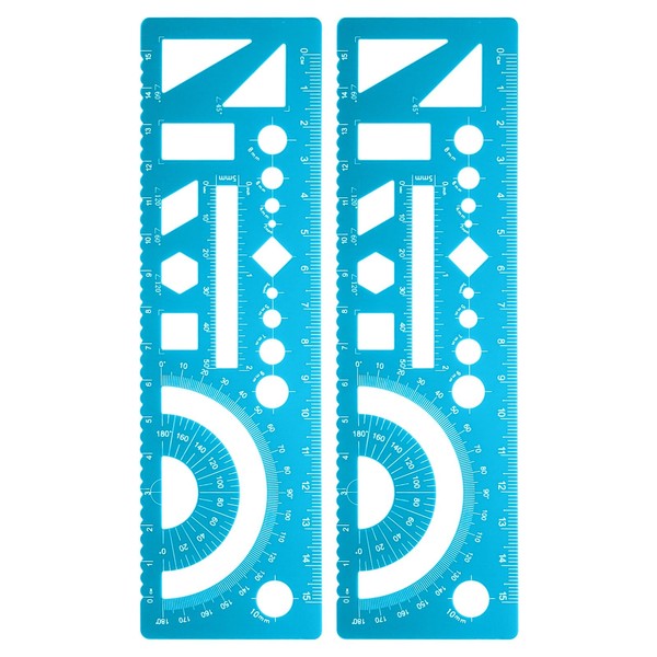 sourcing map 2pcs Multifunctional Geometric Rulers 15cm Metric and SAE Alumin...